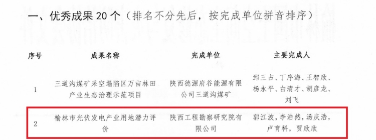 1月30日,榆林市國土空間生態(tài)修復與災害防治協(xié)會2023年度總結大會在榆林順利召開。陜西工勘院承攬實施的榆林市光伏發(fā)電產(chǎn)業(yè)用地潛力評價項目被協(xié)會授予“優(yōu)秀成果”獎項;陜西工勘院榮獲“先進單位”,項目負責人郭江波獲“先進個人”榮譽稱號。本次榮譽的獲得既是榆林當?shù)貙﹃兾鞴た痹杭绊椖拷M技術實力的充分肯定和高度認可,也標志著陜西工勘院在新領域新賽道取得新突破。